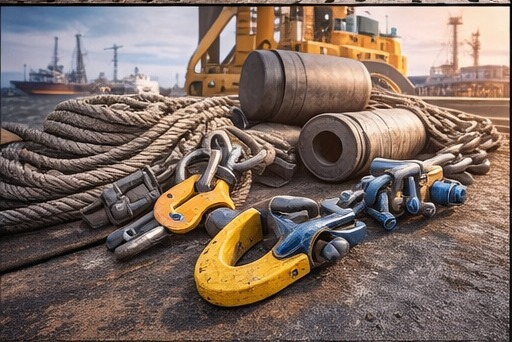 Hooks, shackles, deck fittings, lifting accessories, and heavy-use operational support items.